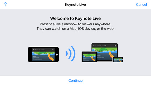?KeynoteLive可让观看者从Mac、iPad、iPhone和iCloud.com上同步观看您演示的幻灯片放映