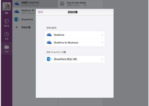 使用 iPad 同步处理 OneDrive for Business 和 SharePoint 中存储的工作笔记。