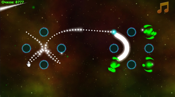 《灵魂引路者 The Soul Lighter》是一款略有难度的解谜游戏。游戏类似记忆线。玩家需要现在空白的地方画出一条线,然后线会跟着你画的轨迹重复运动。不过,你得让这些线穿过全部的绿色小行星哦。对于缺乏空间想象力的小编来说还是略有难度的。还得要求玩家的手有一定的精确度。有些地方稍微出点偏差结局可就不一样啦~