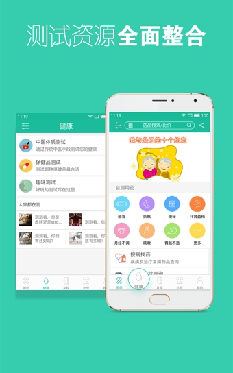 1、自测选药:小毛病自己调,对症状的具体特征和表现进行全面分析,帮您匹配最适合的OTC药品。提供感冒、咳嗽、失眠 、痛经及男性前列腺问题等男性、女性和常见疾病的自测用药指导,帮您选择最适合的药品并提供全方位的日常生活调理建议;