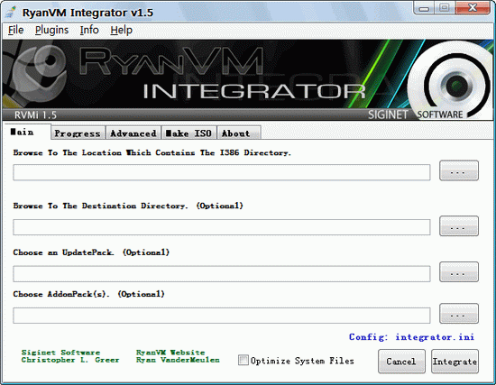 RyanVM Integrator不仅仅是个集成工具。它主要的作用是将微软发行的补丁(hotfixes)和第三方工具直接整合进Windows安装盘里。这些集成进Windows安装盘的补丁和工具,在Windows的安装过程中,将有一个特定的阶段用于安装他们。推荐配合nLite,制作含有最新补丁和工具的个性化windows安装盘