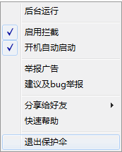 程序主窗口打不开?保护伞并不是打不开主窗口,而是没有主窗口,保护伞为追求极致精简,所以仅保留了托盘图标及菜单,使开销进一步降低。