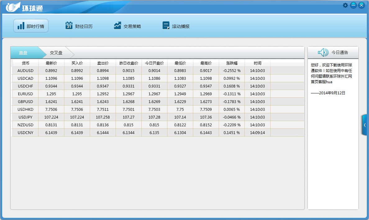环球通软件是一款外汇软件,这款软件中包含了外汇资讯、财经日历、交易策略、交叉盘直盘等信息,在咨询这方面做到专业和权威,因为24小时的实时更新。