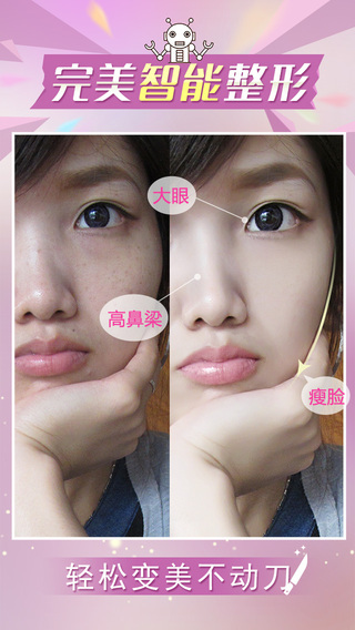▲美白、嫩肤、瘦脸--自拍美颜一步搞定;▲高鼻梁、大眼、亮眼..精致五官轻松调;