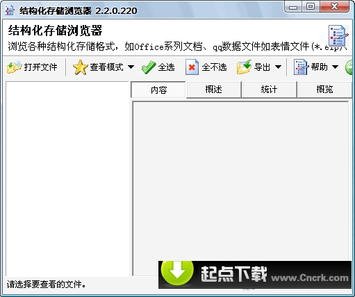 结构化存储浏览器是用以浏览、导出任何使用结构化存储格式的文件,譬如Office系列文档(word/excel/ppt)、qq所有数据文件(*.db)和表情文件(*.eip)、Thumbs.DB等的工具。