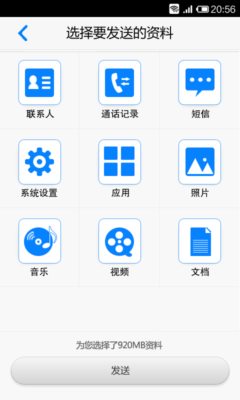 1、联系人、通话记录、短信、图片、音乐、视频、应用、文档、系统应用等九类资料,一键转移。2、支持wifi、手机热点两种零流量传输方式。