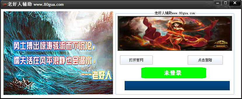 1.登陆老好人辅助免费版后,会出现一个界面,默认为自动选择登陆器类型,直接拖即可识别,如果需要手动,点相应的图标即可。想拖动识别框,请选择空白拖动(点边框无法拖动)2.请保持电脑北京时间的准确性,否者可能造成云更新更新错误的情况,使之功能无效