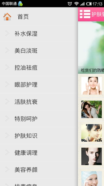 1、护肤分类人性化智能分类,护肤知识全知道,涵盖美白、黑头、补水、祛痘、抗衰、眼部护理、营养美容等全方位专业美容攻略。