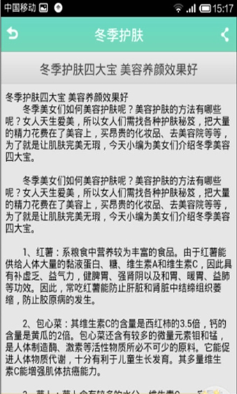 护肤大全是一款非常实用的护肤软件。这款软件会随着季节的变化,给你提供更加完善的护肤方法或者计划。软件里还可以通过饮食来调节你的皮肤,让你的皮肤如婴儿般吹弹可破。