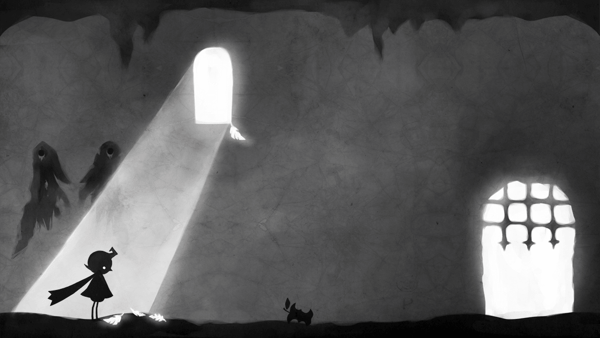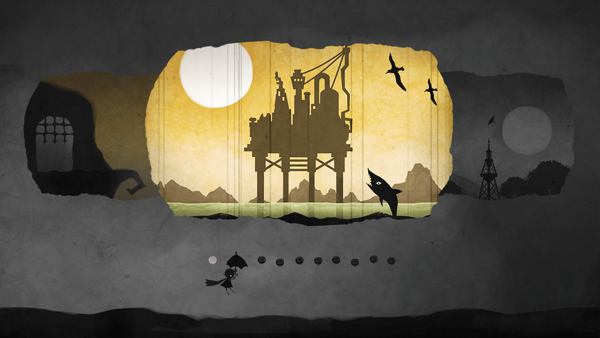 游戏以黑白灰的色调开场,悠悠地钢琴声将游戏的氛围渲染的甚至有些凄美,在皮影与钢琴交织的绘画世界中,通过完成关卡搜集故事碎片,最终拼凑成一个超有爱的故事。