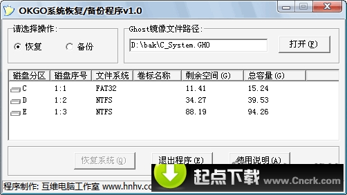 1.本程序在windows界面下操作简单,方便快速恢复/备份系统, 2.本软件完全免费