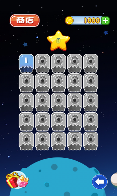 与以往其他类型游戏不同,在游戏美术方面,精致的游戏界面,诙谐可爱的卡通形象,简单明了的UI按钮,给玩家一种新颖的感觉。游戏中主要玩法基于关卡模式、为了保证能够让玩家能够在无联网模式下进行游戏,设计了关卡模式,关卡模式共6大关,每一大关共25小关,玩家可以通过通关获得开启关卡的条件,在每一关游戏过程中,玩家需要获得更多的积分来作为评星标准,星级越高获得奖励越高,从而大大提高了游戏的乐趣。
