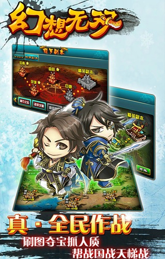 《幻想无双》是一款策略+卡牌双核手机游戏,融合战争策略经营和卡牌收集养成于一身,通过以三国故事为原型的东方幻想风,为玩家呈现出一片充满新奇与幻想的战争大陆。《幻想无双》汲取了卡牌游戏与策略游戏的精华,融合众多创新玩法,使玩家在收集培养武将、闯关PK之余,还能体会各种丰富有趣的玩法:武器强化打造、百朝大战、皇城争霸、炼丹寻玉、勇闯封神塔等十余种游戏模式让人根本停不下来!闲暇之余,还能去给小伙伴点个赞,亦或是抓来当奴隶狠心压榨一番。