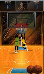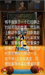 3、既可实现投球,如果球所在位置偏于屏幕的左方,则手指滑动时要稍微向右移动一点;