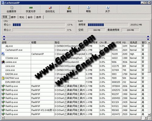 CachemanXP,它通过优化cache,自动恢复RAM以及一些系统设置的调整来优化你的xp