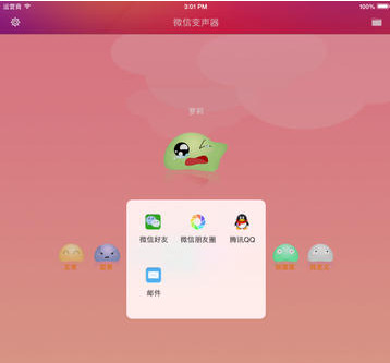 ◆用丰富多变的声音让你的微信语音聊天更有意思。◆支持微信好友、微信朋友圈、QQ、邮件分享。