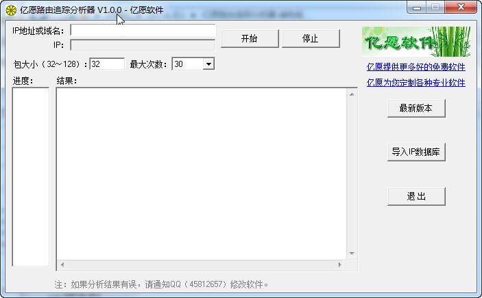 亿愿路由追踪分析器(亿愿路由追踪工具)是一款绿色免费的由亿愿软件官方制作的提供给网管的路由追踪分析工具。软件功能强大,集成了PING和Tracert的功能,同时查询到每一个IP对应的真实地址;只要输入IP或者域名,就可以清楚显示跟踪路由的详细地址清单;不需要再进入到DOS窗口,操作非常方便。【使用方法】
