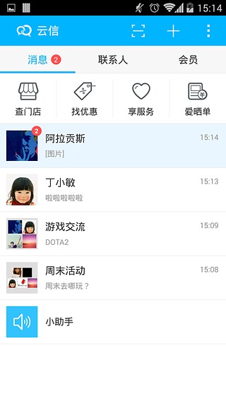 2、与好友聊天,还可以添加门店好友,关注公众账号,了解最新门店信息。