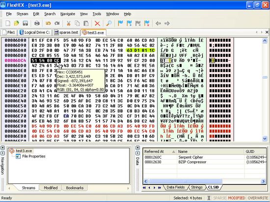该软件包括撤销操作列表浏览器,快速数据浏览器,修改跟踪器,数据测试区,字符串和GUID搜索以及校验和计算这样的功能。软件支持无限的 Undo/Redo功能因此用户不必担心输入错误导致文件损坏。支持高级的NTFS功能
