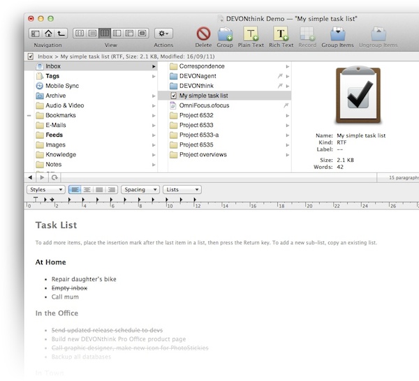【6】收集,分析,总结,撰写,随着DEVONthink你能够毫不费力地交替工作。