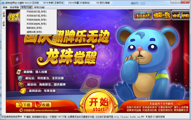 怪物世界MK辅助下载 V1.0 官方绿色版 怪物世界MK辅助是《怪物世界》的一款游戏辅助工具。这款工具可以帮助玩家自动打怪、自动挂机、自动寻路、自动捡物等等功能,还支持账号多开,多账号挂机和清理白屏。