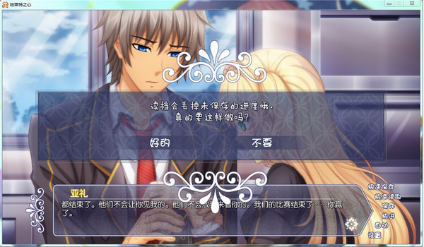《帕莱特之心》是一款文字恋爱游戏,事实上也可以算的上是一款互动电子小说,操作方式主要为鼠标的点击。游戏中玩家扮演的是傲娇的公主亚礼,可以攻略的男主角分别为公主所在班级的班长龙,和自己的男仆谦太。游戏时在一些场景中会出现让主角做出选择的互动,主角所作出的选择将影响整个剧情的发展,决定主角最终会和谁走到一起。建议玩家在游戏时注意随时对游戏进行存档,小编看来尤其在互动选择时需要存档,这样玩家在游戏结束之后,就可以直接从存档点开始选择之前没做出选择的那条线展开新的剧情。
