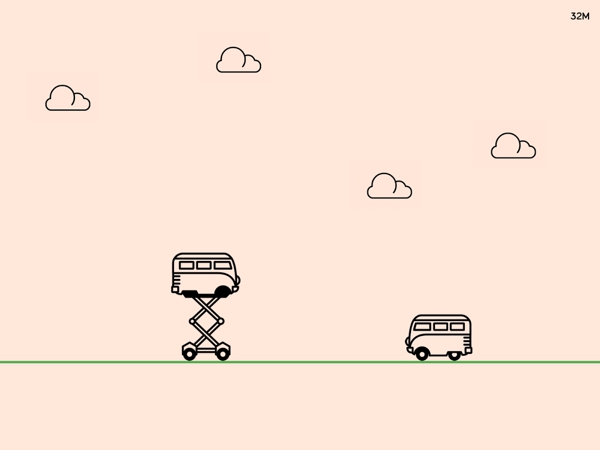 《奇妙旅途 The Trip》是一款风格简约的无尽跑酷游戏,以往的跑酷游戏都非常注重画面的酷炫,科幻风、魔幻风打造的画面完全是华丽的世界,但《奇妙旅途》却不走寻常路,如同小学生作品般的简约画风看起来虽然不酷,却很有爱。游戏中玩家要操控一辆露营车,在一条简单朴素的手绘道路上疾驰,点击屏幕可以进行跳跃,收集到从天空中落下的晶体可以让露营车拥有新的能力,如:弹簧跳跃、飞行、“疯鸟”式空中跳跃等。