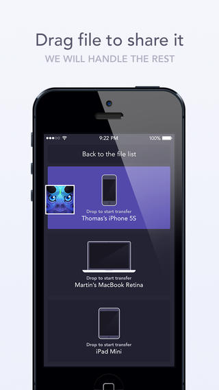 无需配对的设备或设置转移。专为快速方便地共享文件。