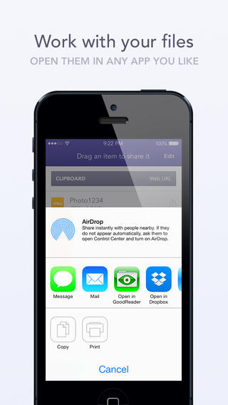 只需打开应用程序,并开始分享文件,无需输入电子邮件和密码。