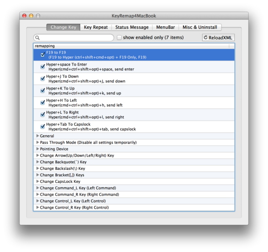 KeyRemap4MacBook 除了自定义按键的映射,它还能全局启用 VIM 模式,只需在 Ubiquitous VIM Bindings 下开启 ESC toggle Normal Mode,此功能在 Firefox 下无效。想自定义按键映射的话,参看官方改键指南 。另外,Windows 下想修改按键映射,当然推荐 hoekey 和 Autohotkey 啦!