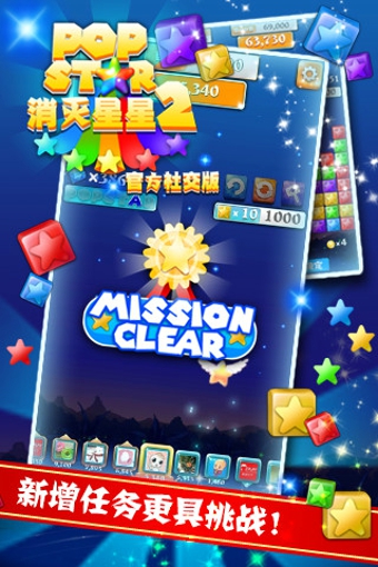 新增消灭星星小任务,完成任务指定颜色的星星消除,获得积分奖励;新增POPSTAR字母收集小任务,全部收齐获得额外奖励;新增雷神之锤、赌徒之手、本杰明的时钟游戏道具,全新功能更多挑战