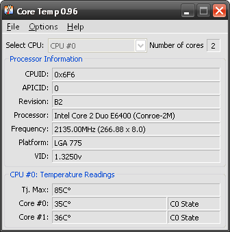 支持Win2003 Win9X Vista Linux Win2000 WinXP【CoreTemp功能说明】