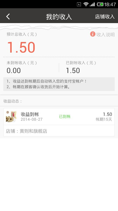(5)您的小店产生的收益会自动转账至您的支付宝账户。