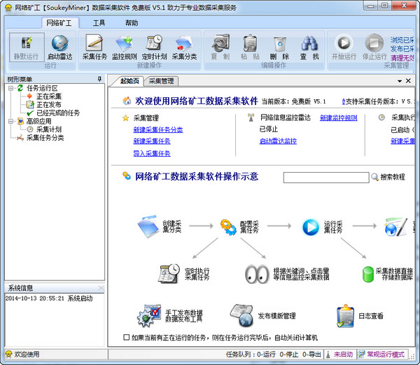 8、其他:支持灵活的定时采集策略、数据监控、静默运行等多种附加功能,不仅可以方便用户的采集工作,也从数据采集实用角度大大丰富的软件的功能应用;当前版本为免费版本,可放心使用,部分功能在免费版本中会有限制!