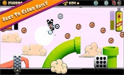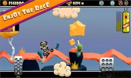 暴躁熊:登山赛车是一款竞技类赛车游戏。一只脾气暴躁的熊驾驶着一辆摩托车,现在由你来控制它,替它执行所有任务,但是要小心不要让熊掉下车,否则它会向你发火。游戏中暴躁熊通过放屁来进行跳跃,它所驾驶的摩托车颜色和服装可以由你自己选定,此外,多收集游戏中的金币,那样你就可以更新装备,改装摩托车。游戏画面卡通韵味十足,游戏音效和音乐充满着欢乐,在你业余无聊的时候,这款游戏是个不错的选择。【游戏特色】