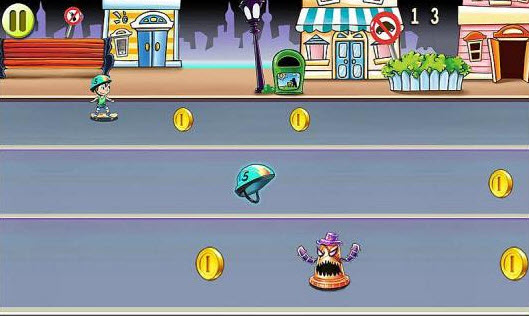 街头快冲安卓版是一款滑板跑酷游戏,游戏主人公是一个呆萌的小男孩,玩家要控制小男孩在街上滑滑板,带好安全帽,做好防护措施,一路向前滑行,滑行的过程中要得到尽量多的金币,还有各种道具可以得到。