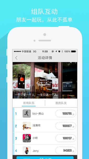 邀请你的好友一起来挑战共同目标;也可以好友间组队PK一分高下