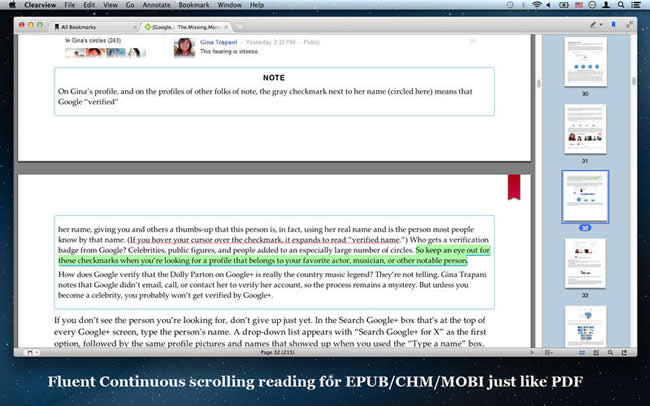 · 支持 PDF, EPUB, CHM, MOBI 四种流行的图书格式,Clearview 对这几种格式的图书都提供了统一的上佳阅读体验。