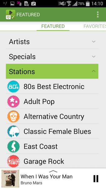 AUPEO! Personal Radio是一款在线音乐电台,内置了爵士、蓝调、流行、经典、R&B等多个频道,基本上涵盖了所有常见的一些音乐流派电台,可以将自己喜欢的歌曲加入我的最爱收藏,可以快速跳转至下一首歌曲,屏幕下方可以快速进入到推荐艺术家栏目,功能十分的完善强大AUPEO!的个人电台