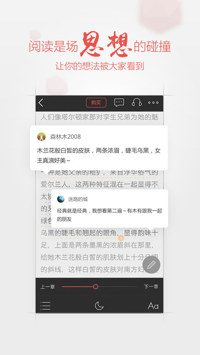 护眼:掌阅全球首创护眼模式,过滤蓝光,减轻眼睛负担。产品特性