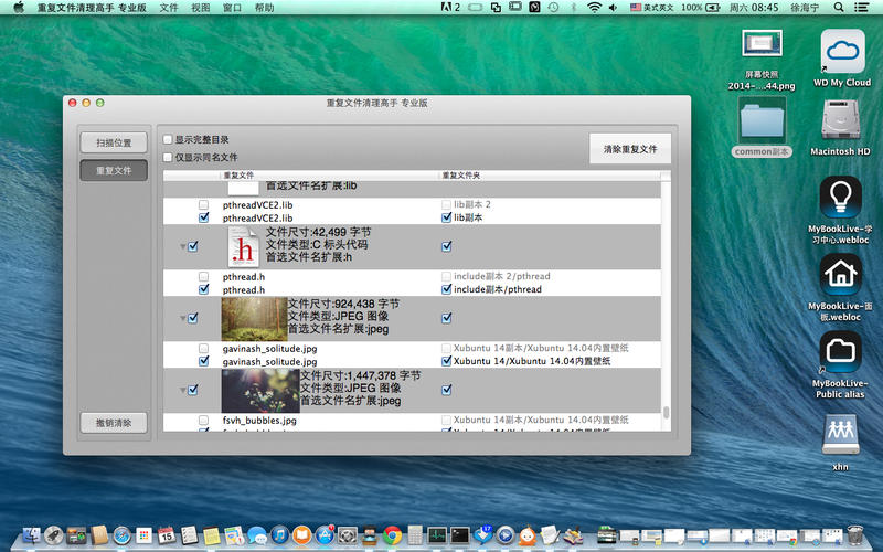 重复文件清理工具是一款能够在苹果mac平台上使用的文件清理软件,可以帮助用户对硬盘快速的扫描,将相同的文件罗列出来,方便用户对不必要的文件进行清理。