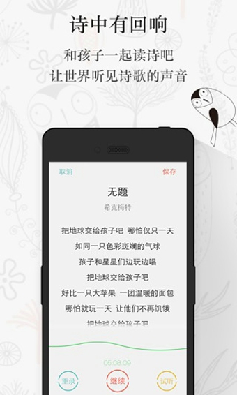 给孩子的诗,献给年轻一代的礼物,为年轻一代开启诗歌之门。由活字文化独家授权,美丽阅读出品,着名诗人北-岛选编的诗歌集《给孩子的诗》同名应用。