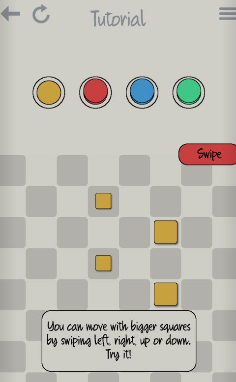 颜色块儿是个有关移动方块至正确的位置的游戏。方块按颜色分为四种 - 黄色、红色、蓝色、绿色。每种类型都有不同的移动方式 - 它们可能会被限制移动,或是推动方块,还有其它类型...