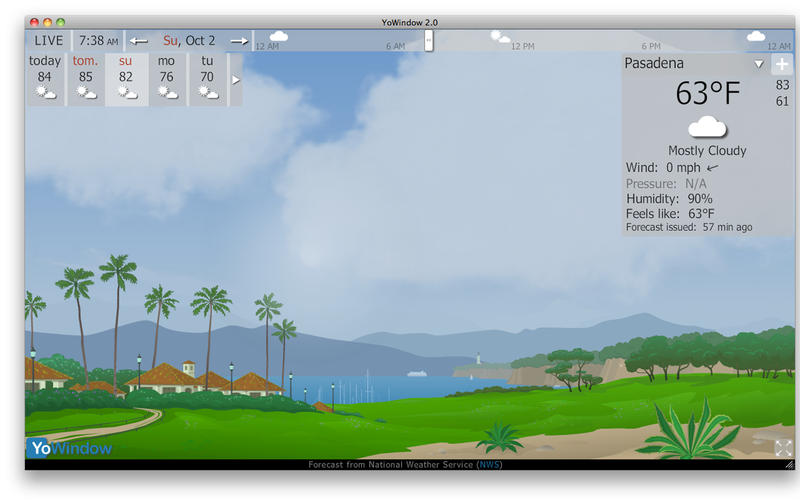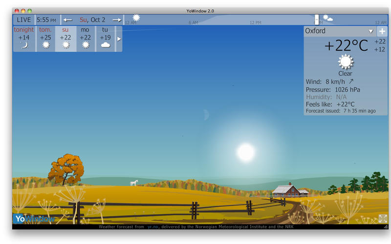 - 生活气象图片,真正的云覆盖,雨/雪,雾,草摆动到风,太阳,月亮,雾,雷暴- 全功能的气象站,大量的信息