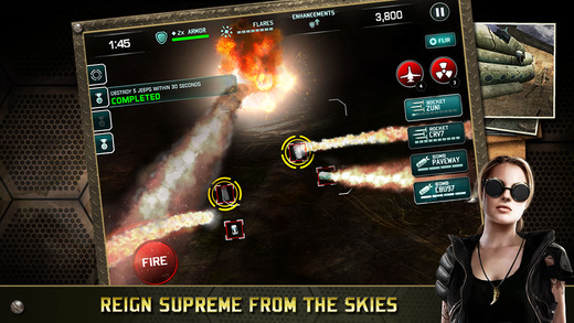 游戏中的操作并不复杂,只需要滑动屏幕来回移动视角,发现目标,然后按FIRE攻击即可。当然有的时候还需要切换一下是用机枪还是用导弹。随着你无人机的升级,可用武器和性能也会产生一些不同的变化。
