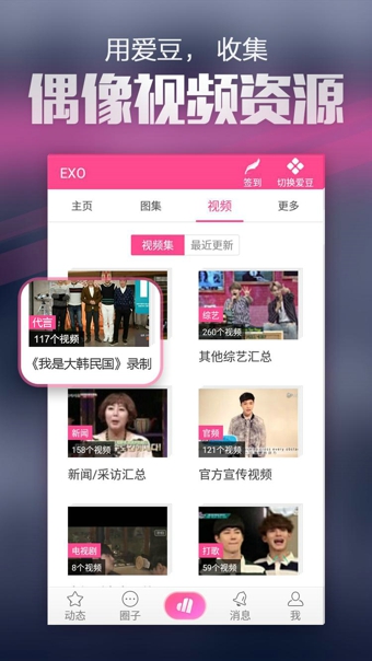 爱豆是一款专为粉丝打造的追星软件,也是一个好玩的粉丝社区。(应用截图以EXO为例)他能够获取明星的最新动态,查看海量高清图片及视频资源,了解明星近期的各种活动行程,同时可以在手机上视频和图文观看演唱会直播、节目直播、活动直播。