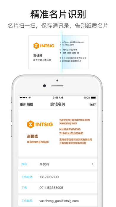 【名片识别】手机拍名片,瞬间精准识别,存入通讯录