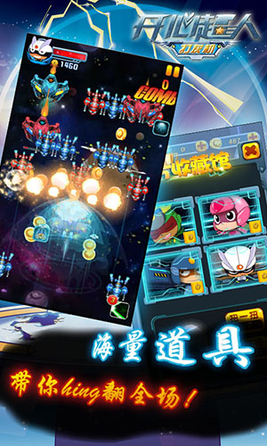 在战斗中,玩家消灭敌机后,会有一定几率爆出各类道具,吸金、保护盾、生命等都会随机掉落,让你无限暴走;另外还有一种方式可以让你瞬间秒杀全场,是什嚒呢,还是到游戏里去找答案吧!
