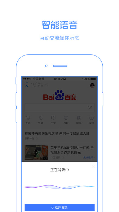 最懂中文的语音识别,让您无须动手即可方便完成搜索,马上说“天气预报”感受下!