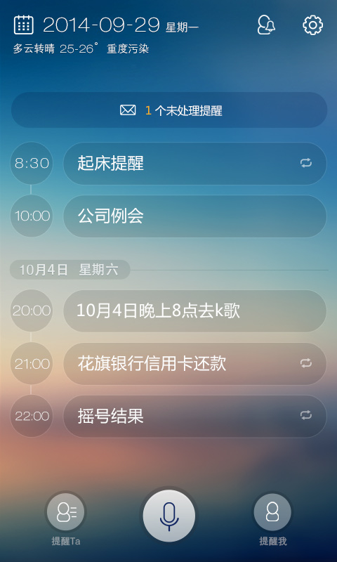 3、『语音』提醒:超霸气的语音提醒功能,说句话自动为你创建提醒。够cool吧!